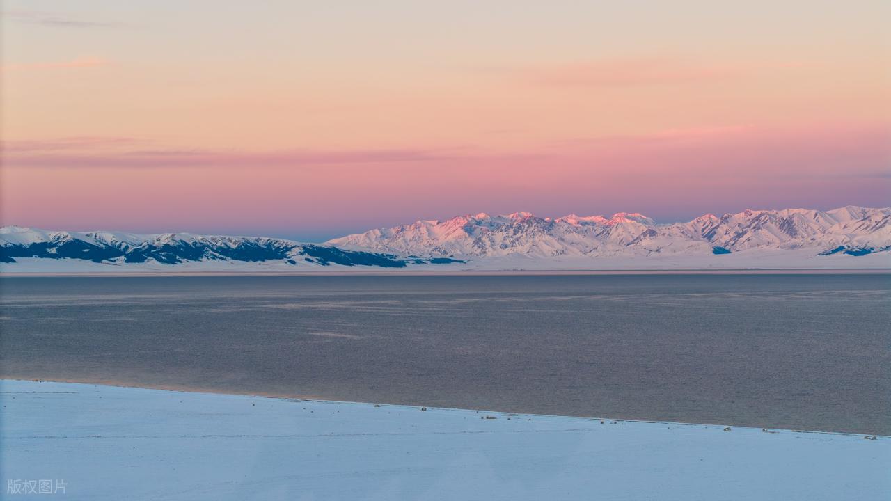 日出前的 20 分钟,是独属于赛里木湖的浪漫。澄澈的蓝慢慢晕染成温柔的粉紫,湖面像撒了一把碎钻,连远处的雪山都裹上了一层柔光。