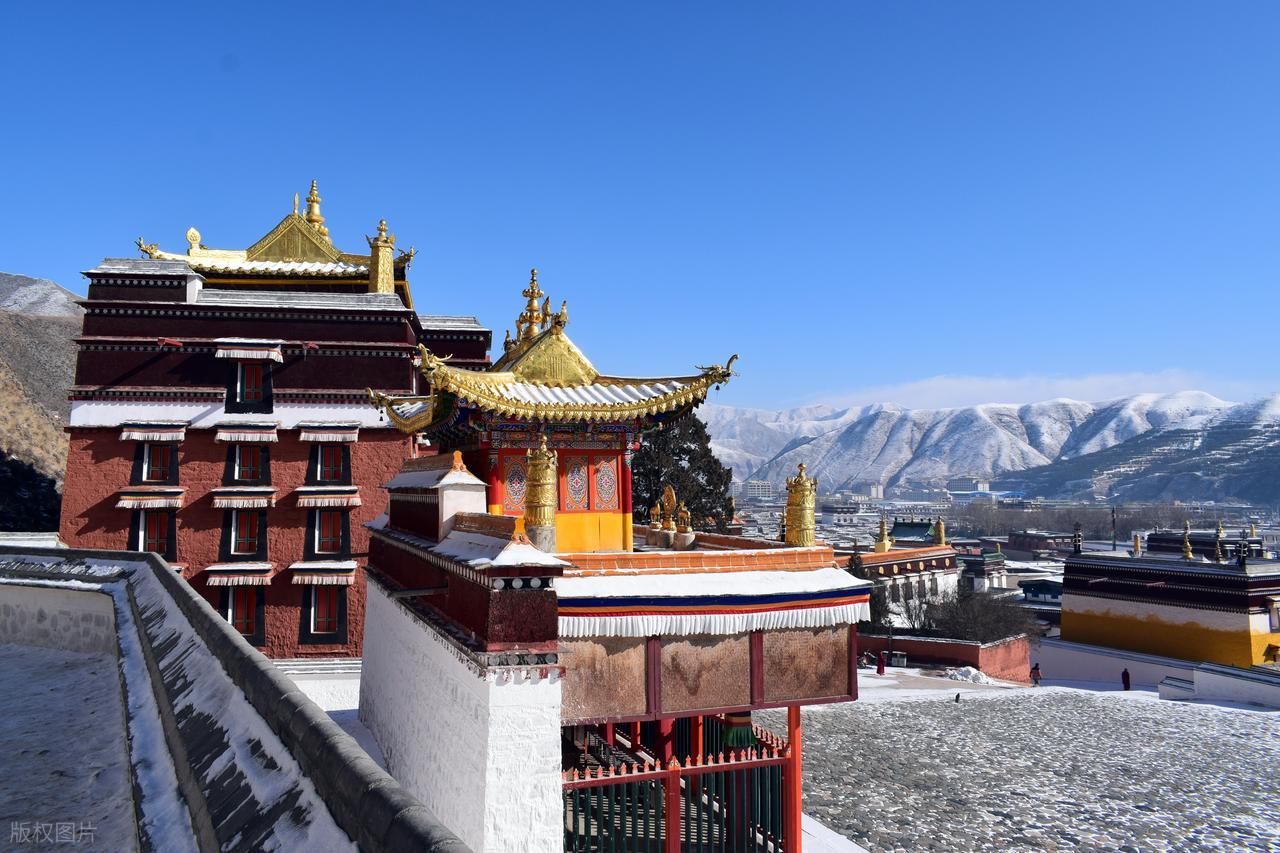 冬天的拉卜楞寺,清冷的蓝色笼罩着世界,宁静而神圣。贡巴寺密密麻麻的僧舍沿山而建,在红墙与白雪的映衬下,极具视觉冲击力。
