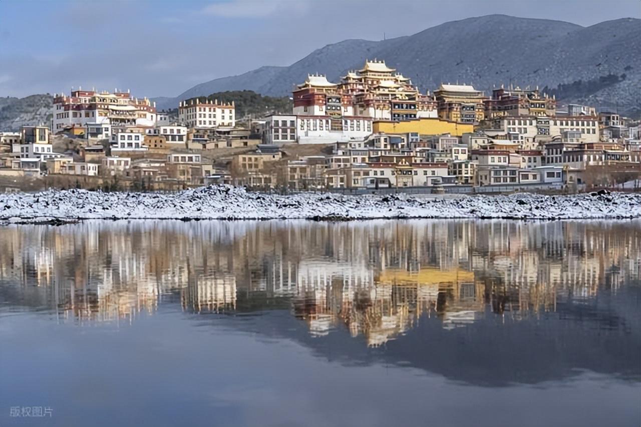 晨雾中的松赞林寺泛着金光,拉姆央措倒影,庄严又静谧。修复后的月光城-独克宗,去转转转经筒,感受温暖的市井气。
